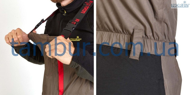 Еластичні та регульовані за довжиною лямки напівкомбінезона дають змогу комфортно носити одяг. Петельки під ремінь допускають використання ременя, на який можна додатково повісити рибальські аксесуари або складаний рибальський ніж.
