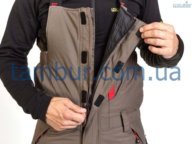Багатофункціональний напівкомбінезон із високою спинкою захистить спину рибалки від вітру та холоду. Достатня кількість кишень: одна нагрудна та дві бічні із застібками-блискавками, дві — в зоні колін із клапанами на «липучках».